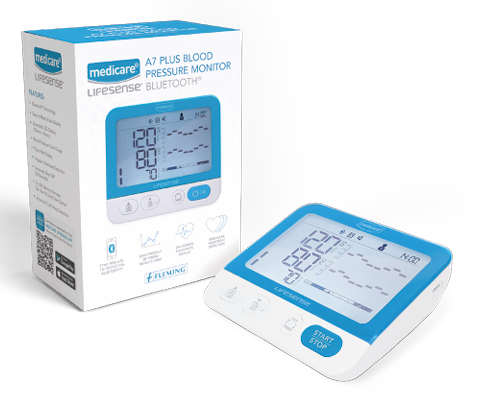 The Medicare LifeSense A7 Plus Blood Pressure Monitor is a state-of-the-art device featuring seamless integration with the LifeSense app. Its user-friendly design includes an extended LCD display for easy readability, along with an intuitive interface for effortless operation. Monitoring your cardiovascular health is made comprehensive with features like the blood pressure trend graph, pulse rate display, and irregular pulse rate detection.