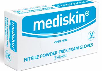 Mediskin Blue Nitrile Powder-Free Exam Gloves are a type of disposable glove made of synthetic rubber that offer excellent resistance to wear and tear. The gloves are used while conducting medical examinations, diagnostic and therapeutic procedures to protect from cross contamination or infection.