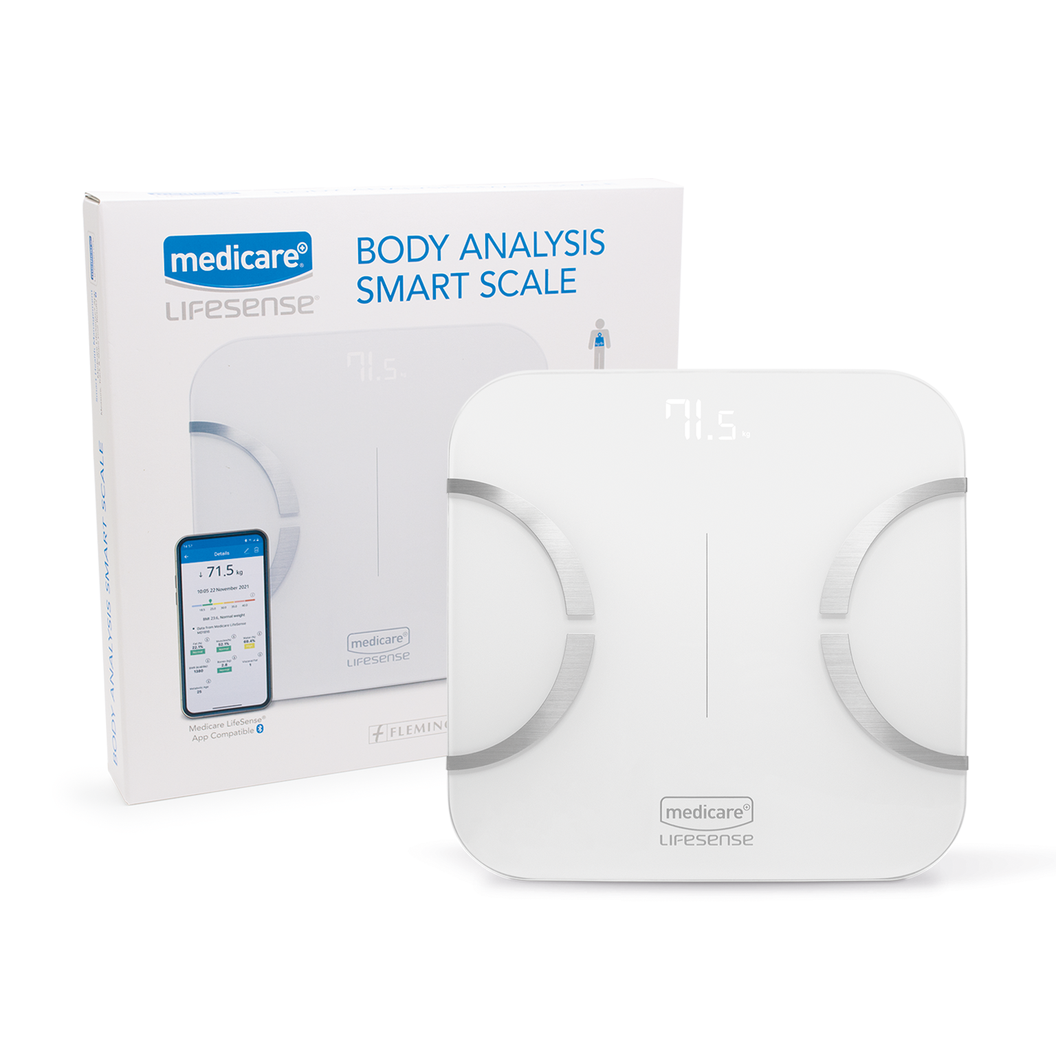 The Medicare LifeSense® Body Analysis Smart Scale provides high-accuracy measurements and a detailed analysis of your body composition. Body weight alone does not give you a full picture of your health. Learning what’s behind the numbers can give you the power to improve your overall wellbeing. Using our highly accurate Body Analysis Smart Scale you can keep track of more than just your weight with the ability to measure body mass index (BMI), body fat, muscle mass and more. Easily transfer your results via Bluetooth to our Medicare LifeSense® App where you can monitor your progress over time.