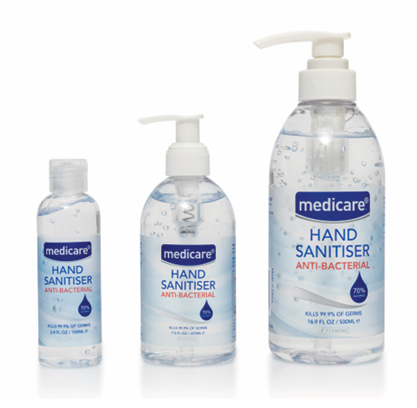 The Medicare Hand Sanitisers are specially formulated to promote skin health and reduce the spread of infections. It has a 70% concentration of alcohol that denaturises the microorganisms cellular protein and kills 99.9% of germs. It has a non sticky, rinse free formula that leaves hands clean and sanitised.