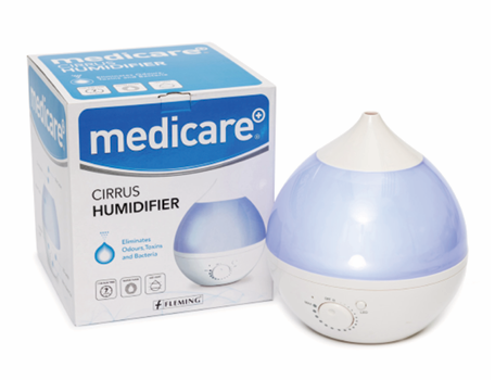 The Medicare Cirrus Humidifier creates a better home environment for those suffering from colds, allergies and dry skin. This humidifier also includes an essential oil diffuser. The natural benefits of essential oils along with soft LED lighting helps create a soothing and relaxed atmosphere.