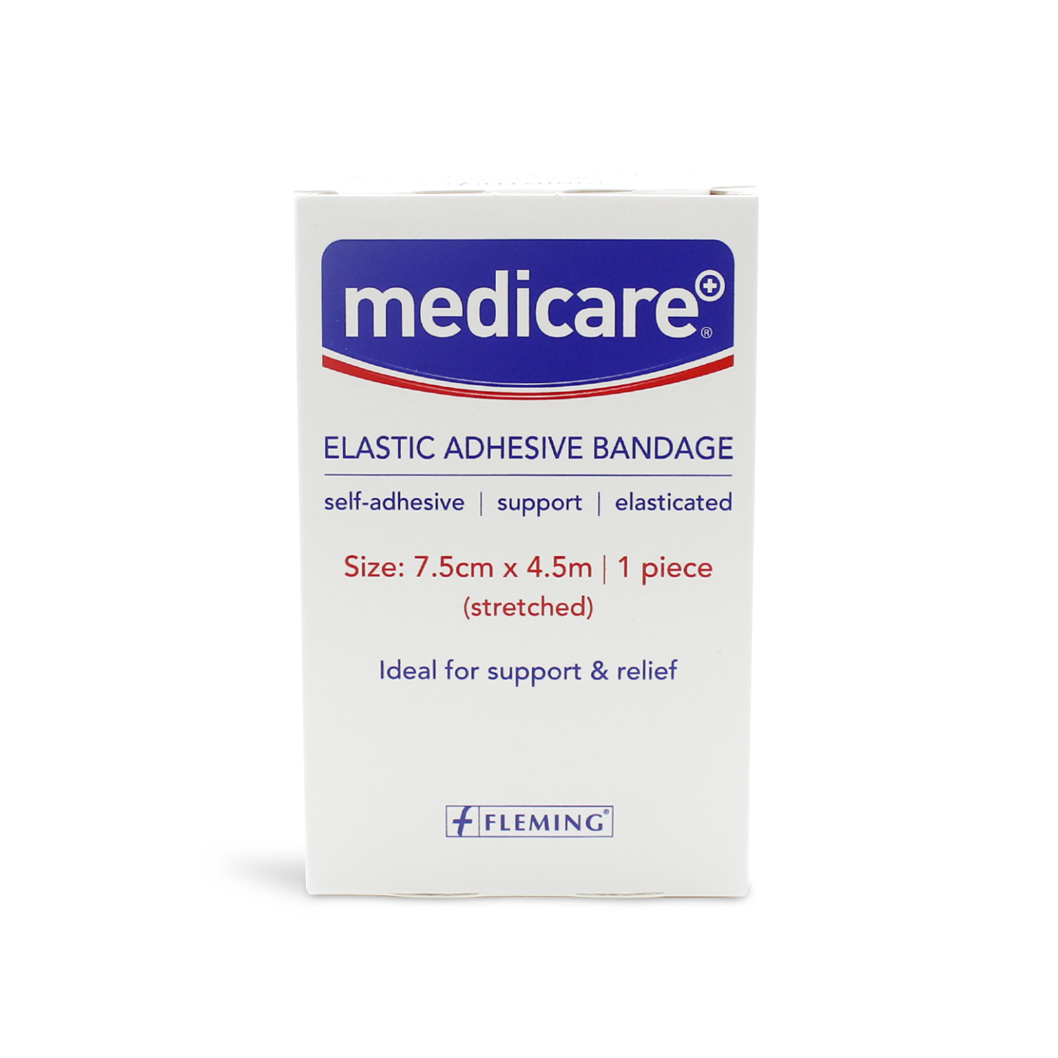 • Self-Adhesive: No need for additional fixation • Elasticated: Stabilisation and simultaneous elasticity to allow movement • Compression: In injuries of the posture and locomotor system • Size: 7.5cm x 4.5m The Medicare Elastic Adhesive Bandage offers firm directional support for strains, sprains and minor injuries. The elasticated bandage is specially designed to offer short-term support to weak joints, particularly ankles and knees. It is also used as a relieving and stretch compression bandage by providing support for joints during high-stress sport activity. The elastic sports bandage help to minimise swelling and provide additional support as an overwrap. Due to its high quality, this ensures that it unrolls smoothly and conforms to the body easily. It is easy to cut for quick application, which makes this bandage a very popular choice for sports and occupational injuries. The Medicare Elastic Adhesive Bandages are suitable for compression bandaging of ankles, knees, fingers, shoulders and elbows. It is commonly used by sports physios and athletes in the prevention and treatment of sprained ankles as well as by professional footballers due to its light weight, which means that it doesn’t bulk up to prevent the player getting their boot on. Thanks to the small amount of give due to its elastic nature, it provides superb support for joint sprains but is also super comfortable. APPLICATION: Before application, slightly unroll the bandage. Apply the bandage to the affected area with moderate tension. Wrap the bandage around the affected area two or three times and then cut at the end. Press thoroughly on the layers, allowing the bandage to adhere to itself. INDICATION FOR USE: For light compression after blunt injuries and treatment in injuries of the posture and locomotor system. Elastic Adhesive Support Bandage to be used on intact skin (medical device). MATERIAL COMPOSITION: 100% Cotton, adhesive coating. PRECAUTIONS: Product contains natural rubber latex, collophonium, and lanolin. If any irritation occurs discontinue use. In case of discolouration or pain remove the product and consult a doctor. Do not try to treat serious injuries at home. Do not apply tape too tightly. Remove tape if numbness or tingling occurs, and re-apply less tightly. If in doubt about an injury, seek medical advice.