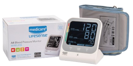 The Medicare LifeSense® A4 Upper Arm Blood Pressure Monitor is designed to connect with the Medicare LifeSense® health status monitoring app so you can effortlessly monitor your blood pressure from the comfort of your own home. It uses irregular heartbeat detection and is reliable due to it’s clinically proven accuracy.