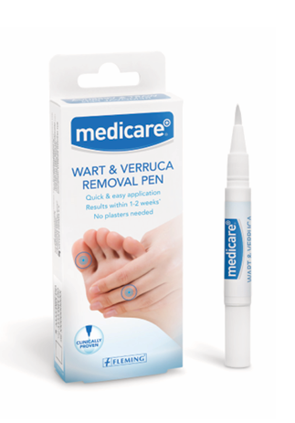 Medicare Wart & Verruca Removal Pen is a medical device for the treatment of warts and verrucas. The active ingredient, salicylic acid, breaks down the wart causing it to gradually peel off. The solution also forms a mechanical barrier preventing the wart or verruca virus from spreading.