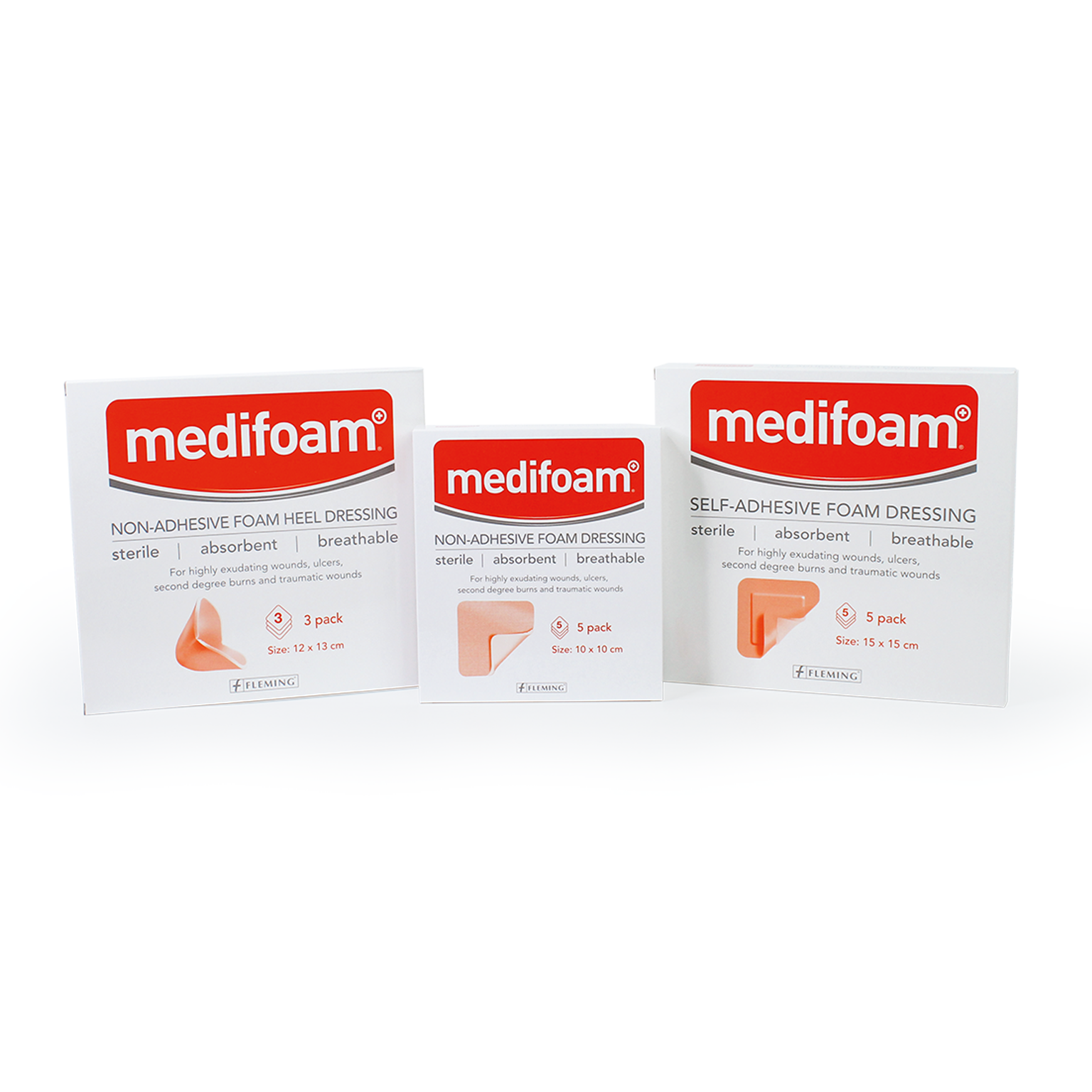 Medifoam Non-Adhesive Foam Dressings are a hydrocellular sterile foam dressing which absorbs and retains exudate whilst maintaining a moist wound environment. Composed of a thick soft absorbent polyurethane foam back by a dual layer of breathable polyurethane film. Designed for a wide range of exuding wounds such as leg ulcers, foot ulcers, pressure ulcers, skin tears. Medifoam dressings are a range of hydrocellular sterile foam dressings. Designed for moderate to highly exuding wounds such as pressure ulcers, leg ulcers, skin tears and abrasions, skin graft donor sites and under compression bandage systems for venous ulcer treatment. Thick soft absorbent polyurethane foam backed by a dual layer of breathable polyurethane film which effectively absorbs and retains exudates whilst maintaining a moist wound environment. • Medifoam Non-Adhesive Heel Foam Dressing is a cup-shaped hydrocellular sterile foam dressing which absorbs and retains exudate whilst maintaining a moist wound environment • Composed of a thick soft absorbent polyurethane foam back by a dual layer of breathable polyurethane film • Designed for difficult to dress areas such as heels, elbows, stumps, babies’ heads and other anatomical areas where a flat dressing is not appropriate • Rapid Absorption • Superior cushioning and insulation for wound • Non-adherent wound contact layer • Waterproof and bacteria proof backing film • Breathable outer layer • Maintains a moist wound environment at the surface of the wound • Greater patient comfort • Sterilised and individually packaged • Size: 12cm x 13cm • 3 Pcs per Pack