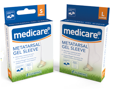 Medicare® Metatarsal Sleeves provide targeted relief for metatarsalgia, corns, calluses, sesamoiditis, and other foot issues by offering metatarsal support and soft cushioning.The fabric-covered gel helps alleviate pain, prevent blisters,and reduce pressure on the balls of your feet. The ultra-thin,breathable design can be worn with or without shoes, and the toe-fastening feature keeps the sleeve securely in place.