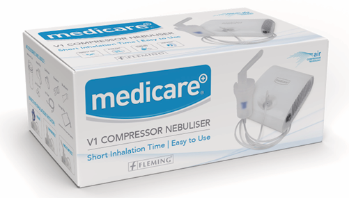 The Medicare V1 Compressor Nebuliser is a robust nebuliser ideal for home based, frequent use by adults or children. This highly effective nebuliser combines a short inhalation time with intelligent medication delivery thanks to its powerful compressor. The compressor generates a